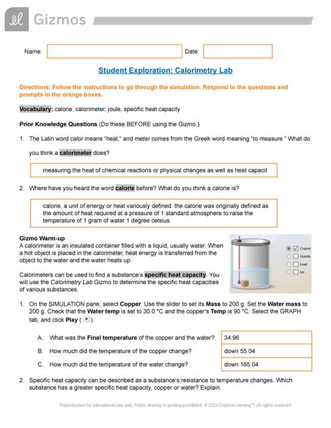 Download Student Exploration Calorimetry Lab Answer Key PDF mobipocket Gutenberg